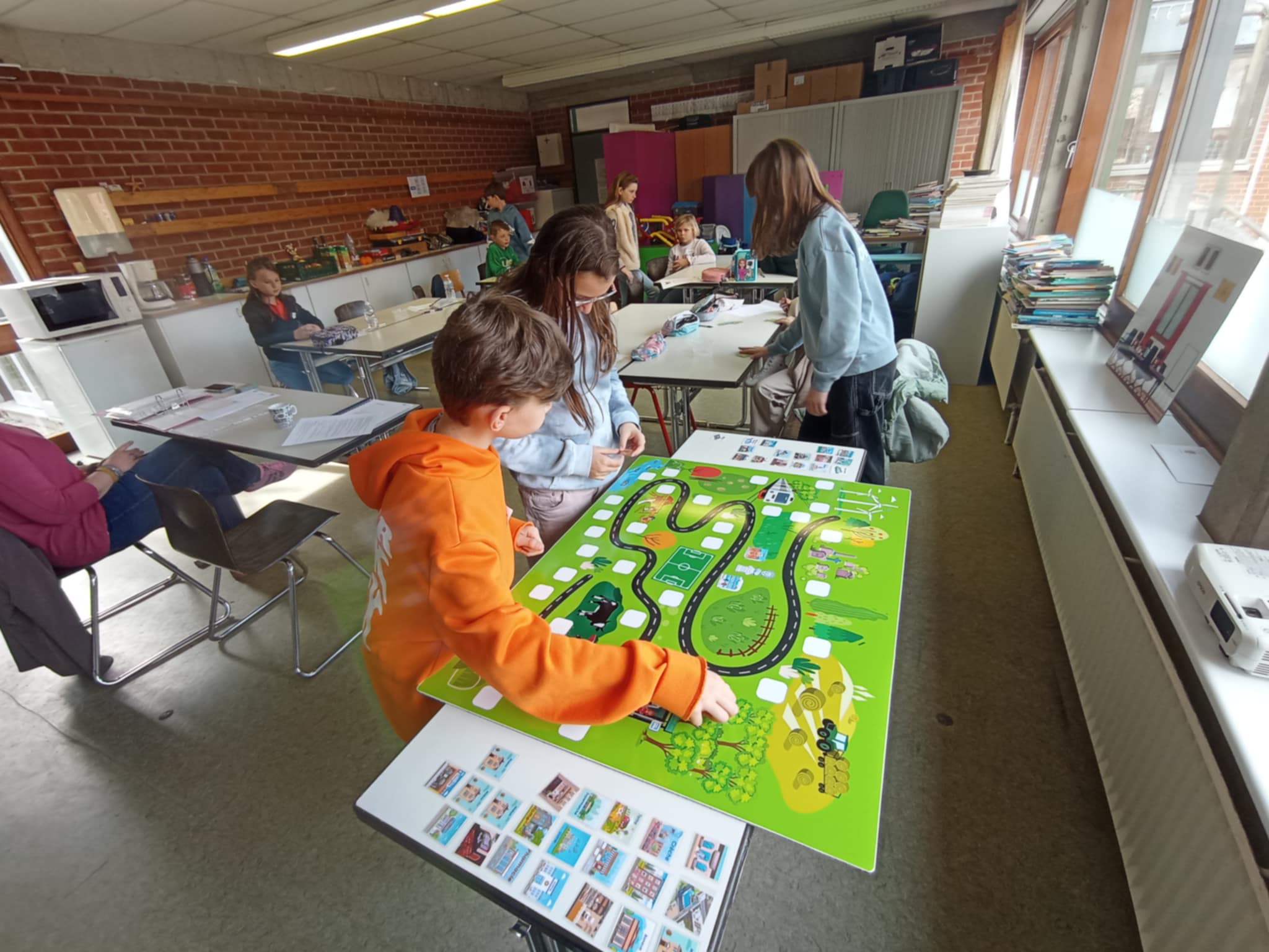 L’animation prend la forme d’un jeu de l’oie comprenant des cases différentes (hors cases bonus) : dessins, infos, memory, questions, puzzles, photos.